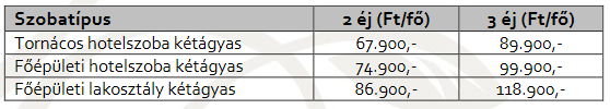Figyelembe véve a fenti programokat és ellátást, a részvételi díjak következők :